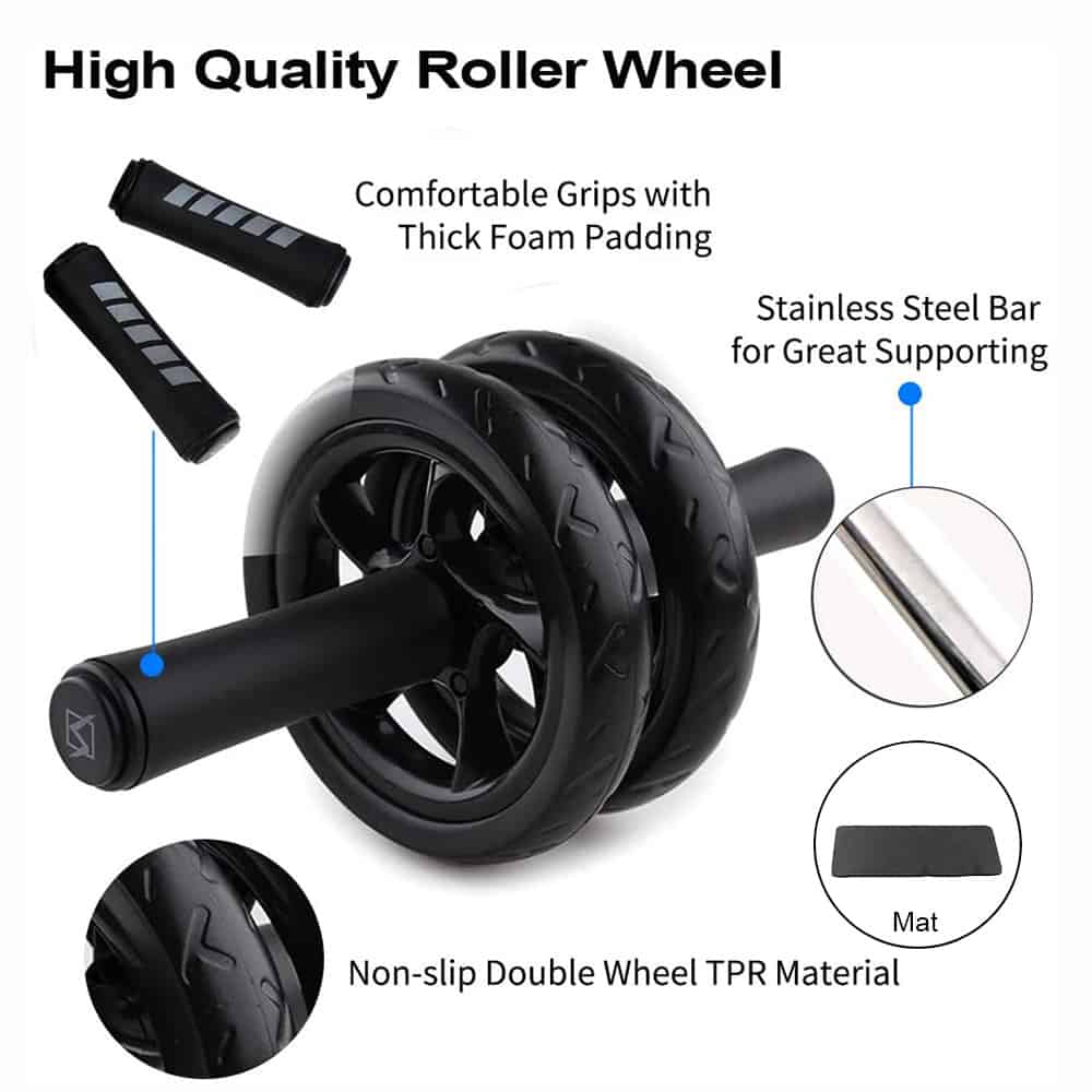 רולר גלגל לאימון הבטן. החבילה כוללת גלגלת גלגל בטן, מחצלת והוראות. רולר גלגל הבטן עשוי מחומר עמיד והוא קל משקל ונייד, מה שהופך אותו קל לנשיאה. העיצוב של רולר גלגל הבטן מאפשר לו לעבוד ולבנות את שרירי הבטן בצורה יעילה. הידיות מונעות החלקה לנוחות והגלגלים כפולים ליציבות. מוצר זה מושלם עבור כל אדם מתחיל ועד מנוסה.
